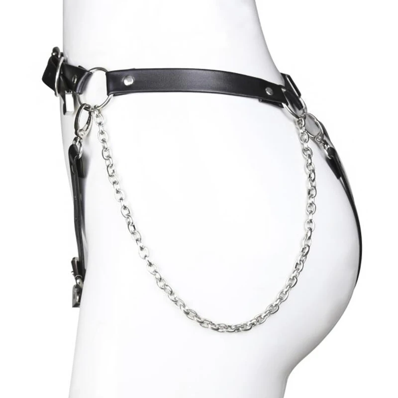 Experimente la combinación perfecta de estilo, comodidad y seguridad con nuestras bragas de cadena de esclavitud con cinturón de castidad femenina de cuero PU.